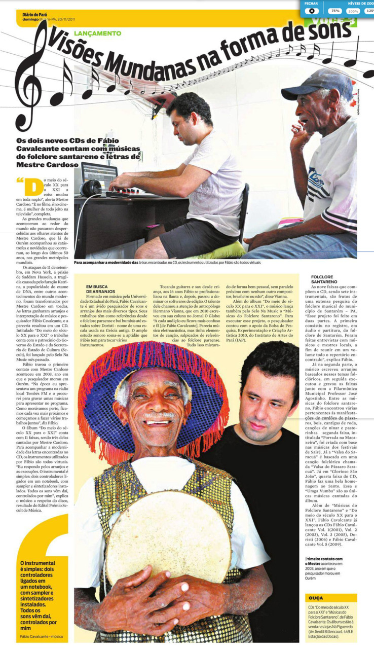 E aqui está uma matéria no Diário do Pará, do dia 20/11/2011, sobre o lançamento do CD “Do meio do século XX para o XXI” (e do CD “Músicas de Domínio Público do Folclore Santareno” também, que foi lançado quase na mesma época)
